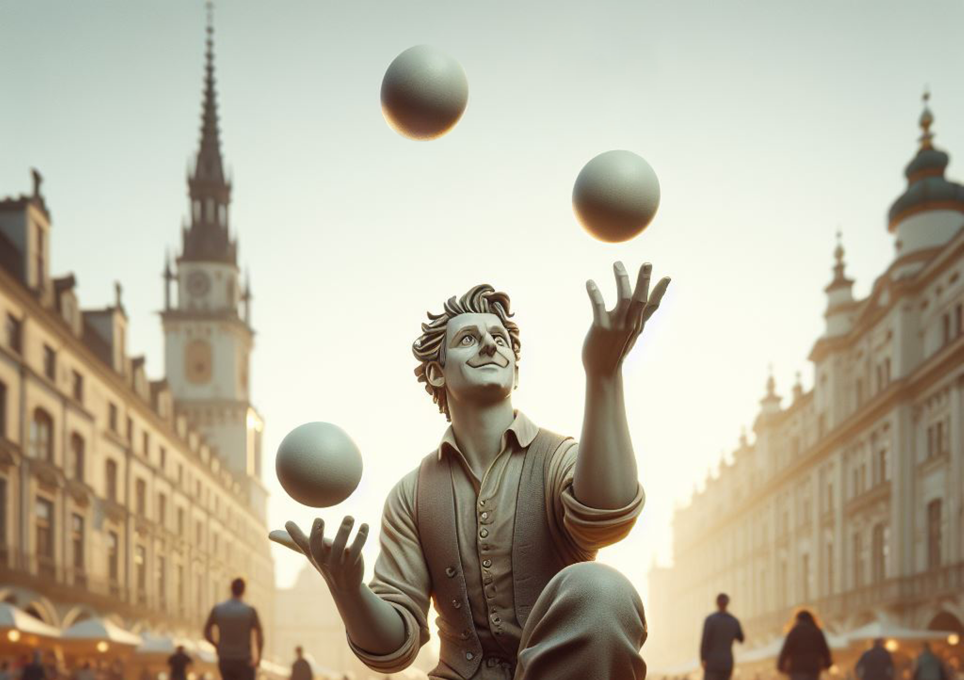 Massues, balles, cerceaux — des numéros de jonglerie adaptés à tous les espaces.